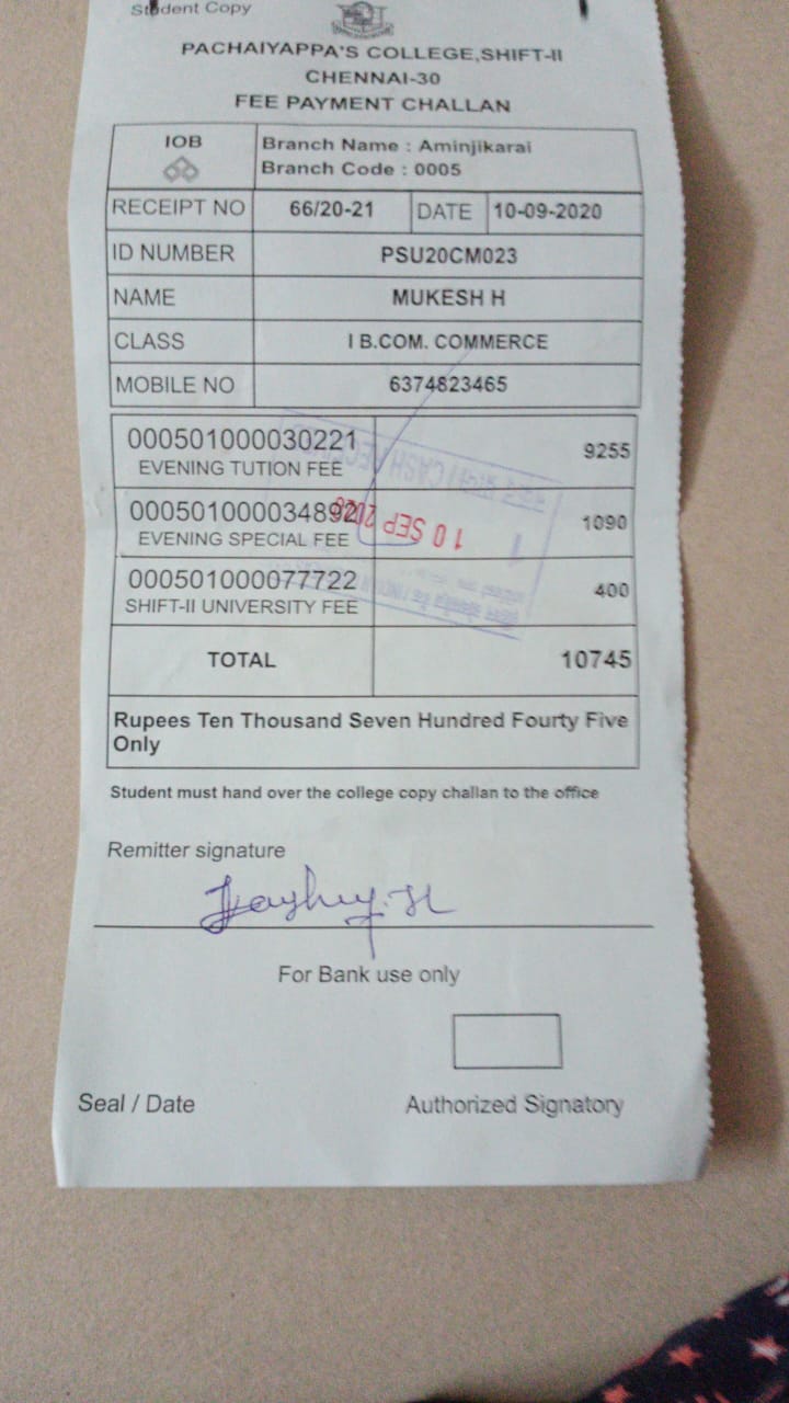 Life Again Foundation has helped paying the Tuition Fee of an eligible student.